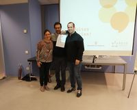 Entrega de Certificado al vicepresidente por dos grandes formadores del programa activa't, Cristina y Cristian, que permite a Asfatac moderar sesiones de GAM-Grupo de Ayuda Mutua de familiares. | |